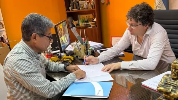 El gerente general de Aguas del Norte, Juan Bazán, se reunió con el intendente de General Güemes, Kety Rosso, para ...