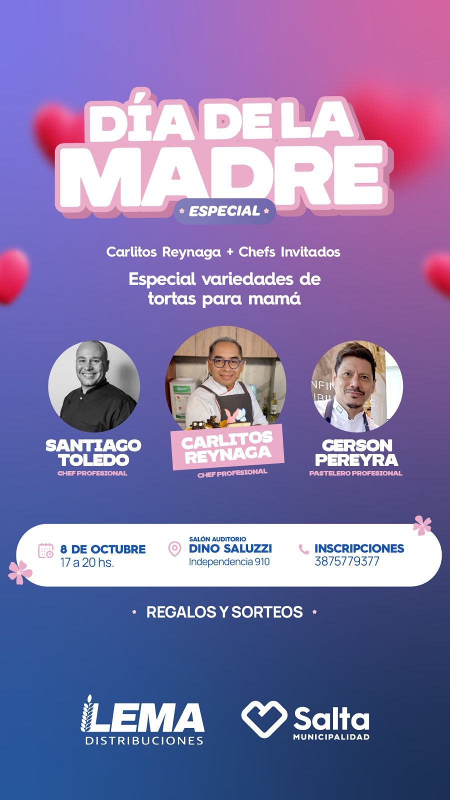 El próximo 8 de octubre, de 17 a 20 hs., la Municipalidad de Salta junto a Lema Distribuciones invitan a celebrar el Día de la Madre con un encuentro único dedicado a la gastronomía y al reconocimiento de las mamás.